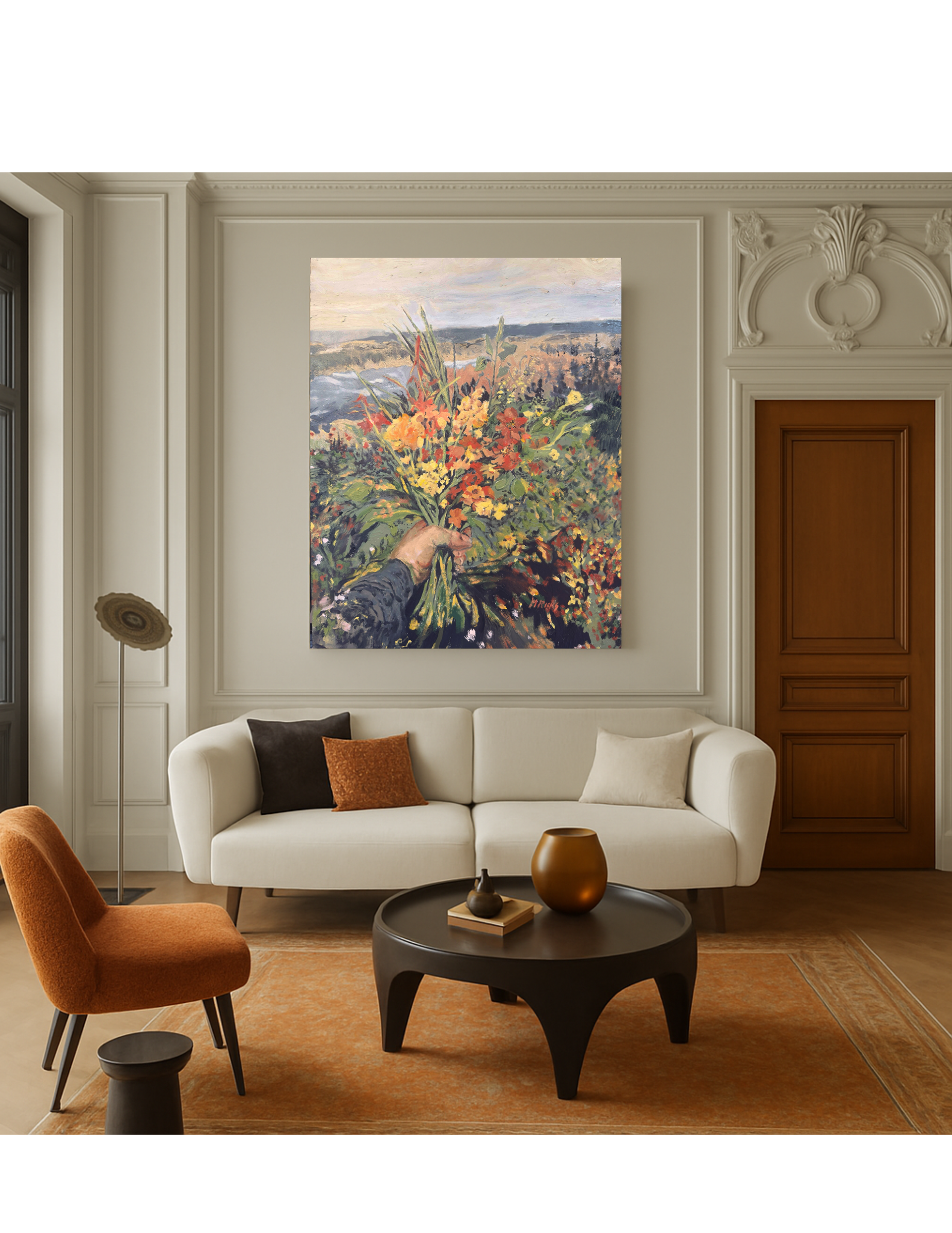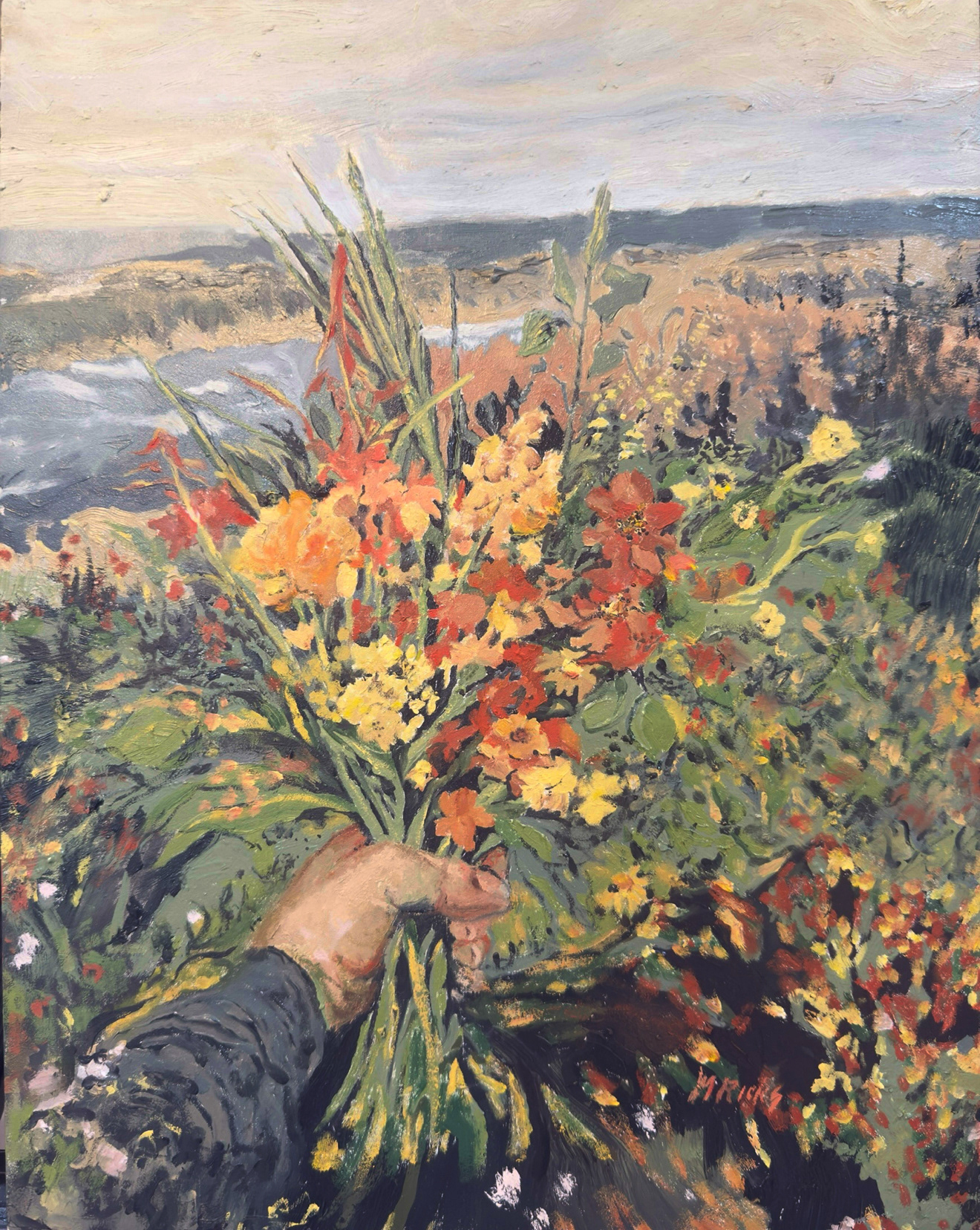 What do flowers mean to you? What does a beautiful view mean to you? When I painted this, I wanted to hold on to a place in time—the kind of place you can return to when life feels too loud. My daughter had gathered these wildflowers on a trail my family has walked for generations, and in that small act, everything I love about that landscape came rushing back. The warmth of late summer, the sound of wind through grass, the way love lingers quietly in ordinary moments.