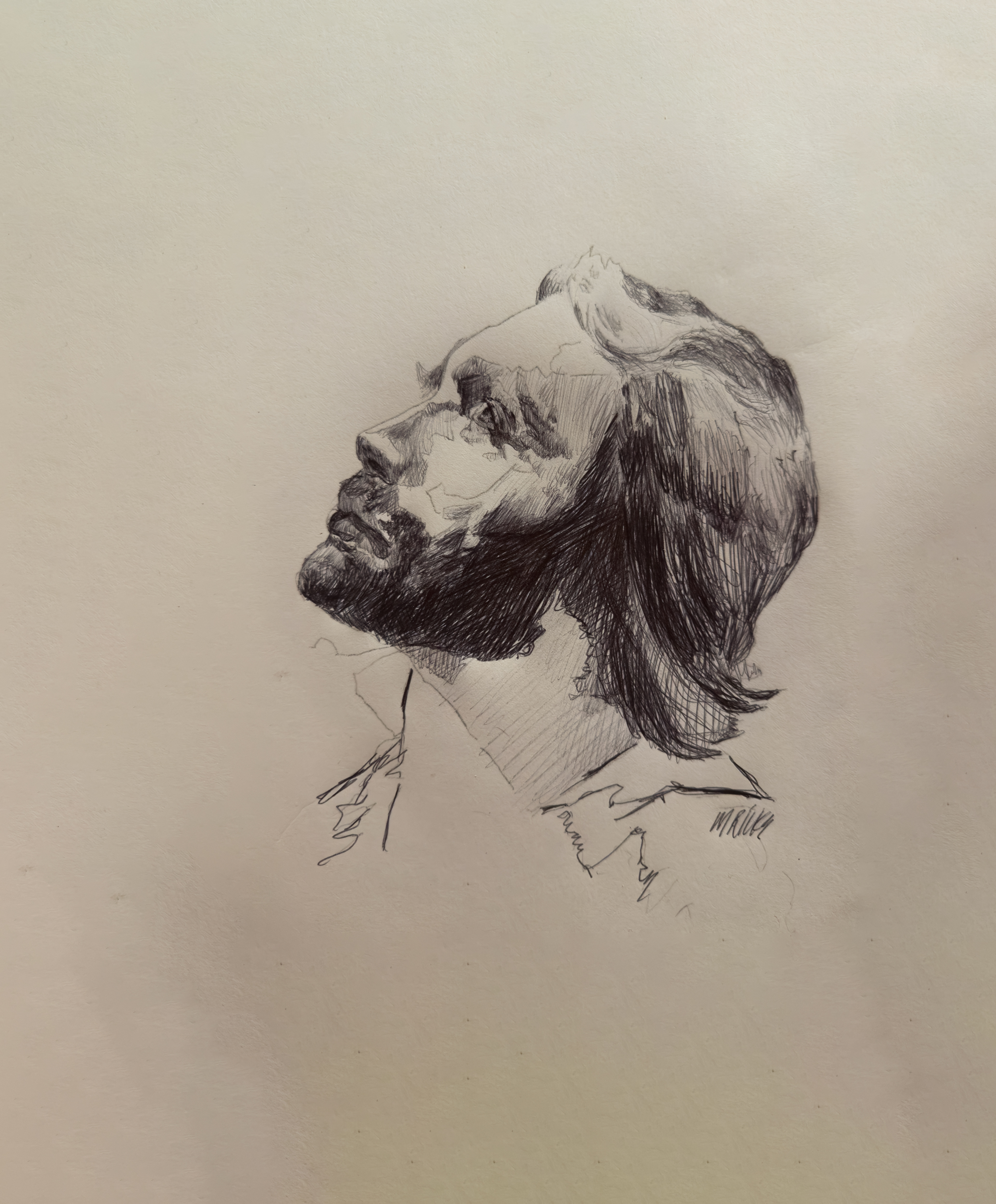 This drawing grew out of that ancient economy of faith. Christ is not depicted in triumph, nor in overt suffering, but in orientation. His gaze moves upward, away from the visible weight of the world, toward the unseen will of the Father. In that tilt of the head is the entire theology of the passage: life is found not in self-preservation, but in attention; not in grasping, but in looking.
