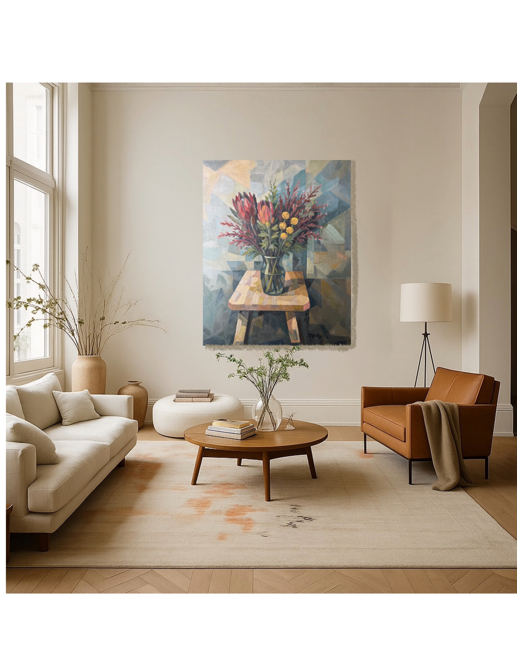 There’s something disarmingly honest about flowers, isn’t there? They don’t strive or perform...they simply are, bold and delicate at once. This piece was born from a moment that felt equally genuine. I had the privilege of hosting a shower for a dear friend, and as a group of close girlfriends, we chose these blooms together for the celebration. The colors and textures of the bouquet left us speechless—a reminder that the earth offers us wonder without asking anything in return. I wanted to capture that: the way flowers quietly light up a room, soften hearts, and make even the weariest among us pause, breathe, and smile. It’s a small tribute to beauty’s power to surprise us, to lift us, and to remind us how lucky we are to share this world.