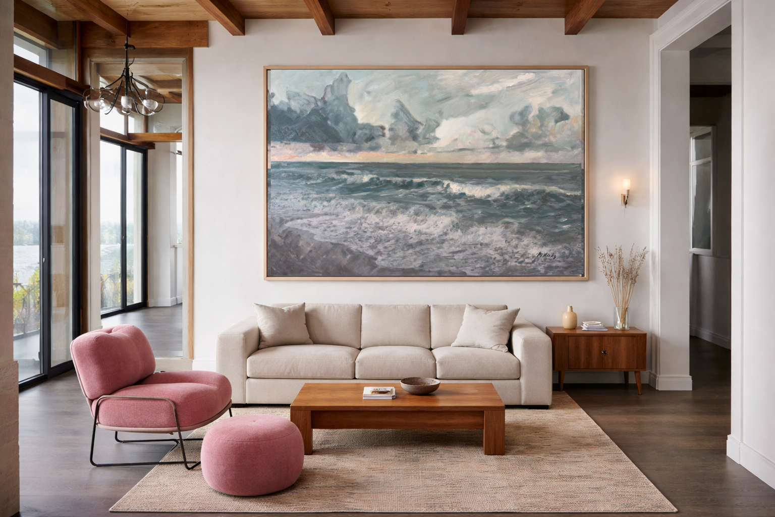 At first, the work was simply about the ocean…its movement, its refusal to settle, the way the horizon steadies without controlling. I followed instinct rather than meaning, letting the waves arrive and rearrange themselves through paint.